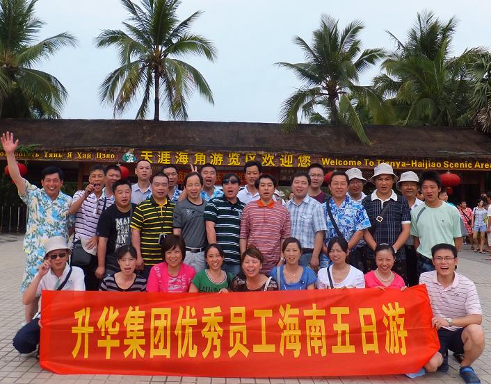 5月14日,升華首個(gè)專門為年度先進(jìn)模范人物量身定做的“犒賞游”團(tuán)隊(duì)順利歸來,26位獲得2010年度升華集團(tuán)勞動(dòng)模范、技術(shù)創(chuàng)新能手與優(yōu)秀員工榮譽(yù)稱號的先進(jìn)模范人物,愉快地結(jié)束了海南五日游,精神抖擻地回到各自的工作崗位。集團(tuán)公司黨委副書記、副總經(jīng)理兼工會主席鮑希楠親自帶隊(duì),他告訴我們:公司出臺一系列的獎(jiǎng)勵(lì)舉措,犒賞先進(jìn)模范人物將有助于激發(fā)更多員工向優(yōu)秀員工學(xué)習(xí)、看齊,對強(qiáng)化崗位責(zé)任意識,推動(dòng)員工間的創(chuàng)先爭優(yōu)活動(dòng)也是一種極大的推動(dòng)。