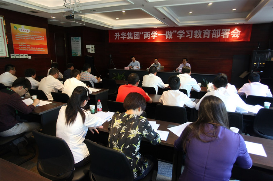 “學(xué)黨章黨規(guī)、學(xué)系列講話,爭做‘四講四有’的合格共產(chǎn)黨員”。5月12日,升華集團(tuán)“兩學(xué)一做”學(xué)習(xí)教育部署會在集團(tuán)公司二樓會議室召開。鐘管鎮(zhèn)黨委副書記史育峰,組織委員邱文輝參加會議。集團(tuán)黨委副書記兼“兩學(xué)一做”學(xué)習(xí)教育領(lǐng)導(dǎo)小組副組長鮑希楠參加會議,并對“兩學(xué)一做”學(xué)習(xí)教育作了具體部署。當(dāng)天的學(xué)習(xí)教育部署會上,集團(tuán)黨委還印發(fā)了《中共升華集團(tuán)委員會“兩學(xué)一做”學(xué)習(xí)教育實(shí)施方案》。